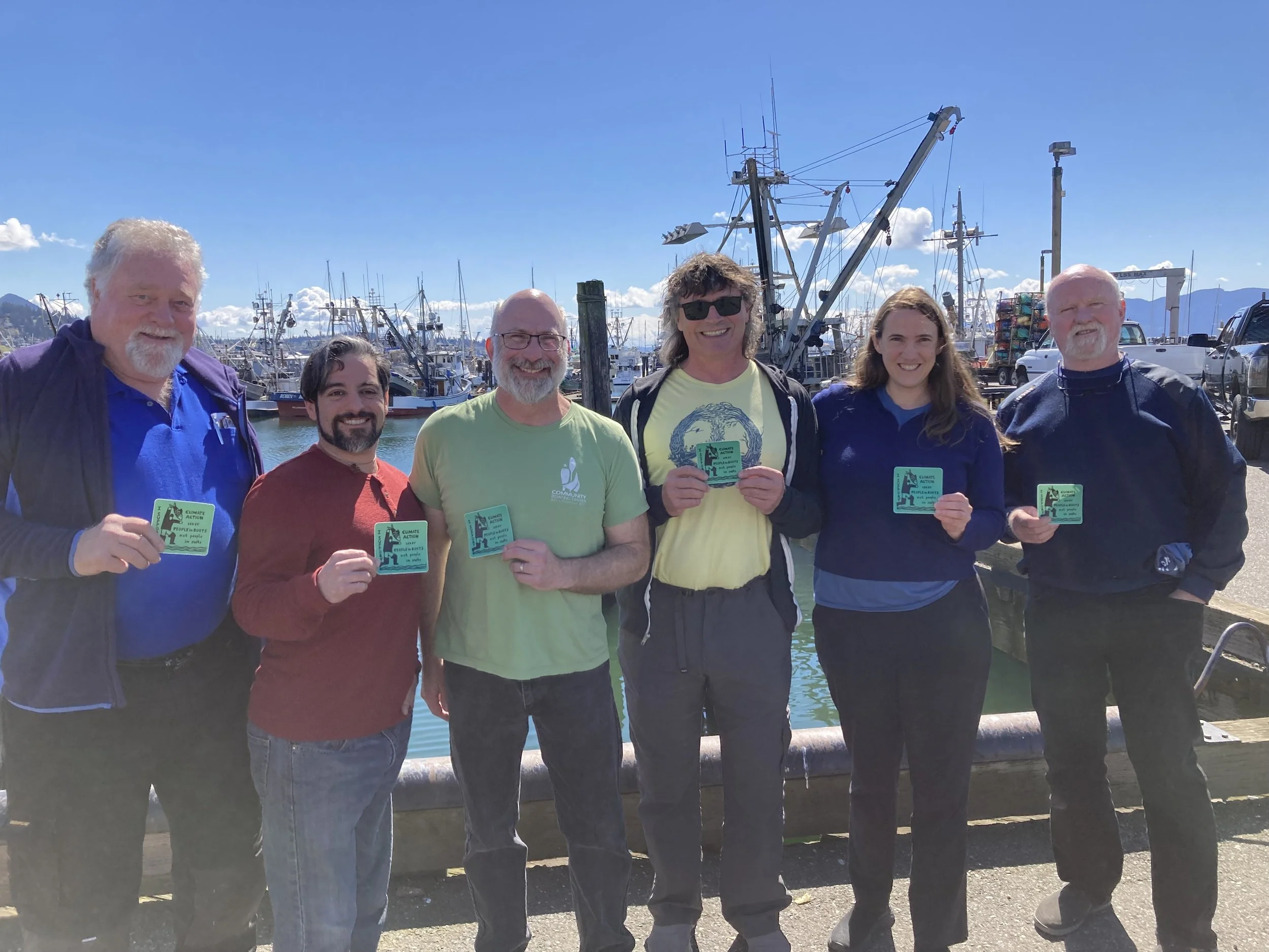 Fishermen pose with Sarah Schumann in Bellingham, Washington, after a workshop focused on a transition to a low-carbon fishing fleet. Photo courtesy of Fishery Friendly Climate Action Campaign