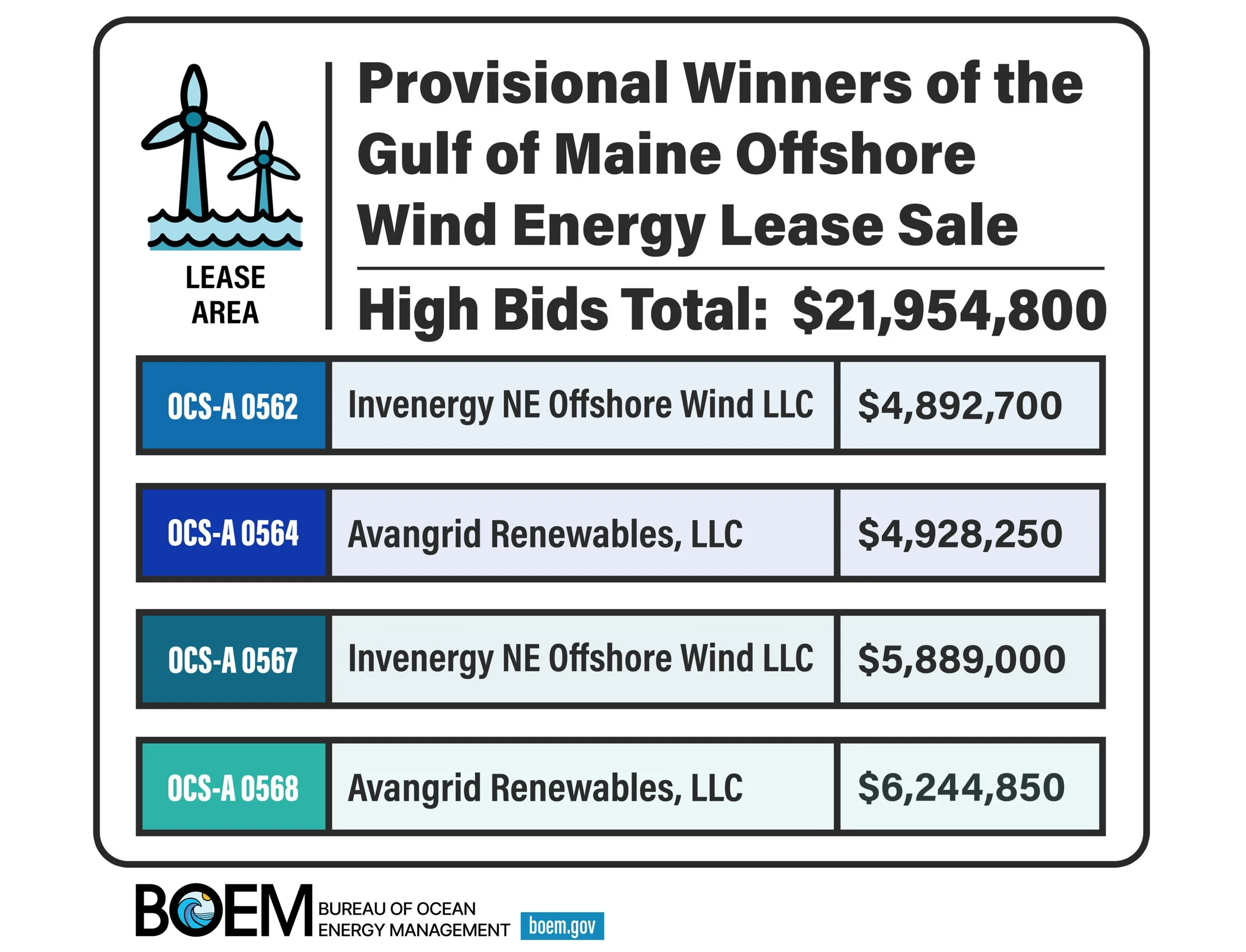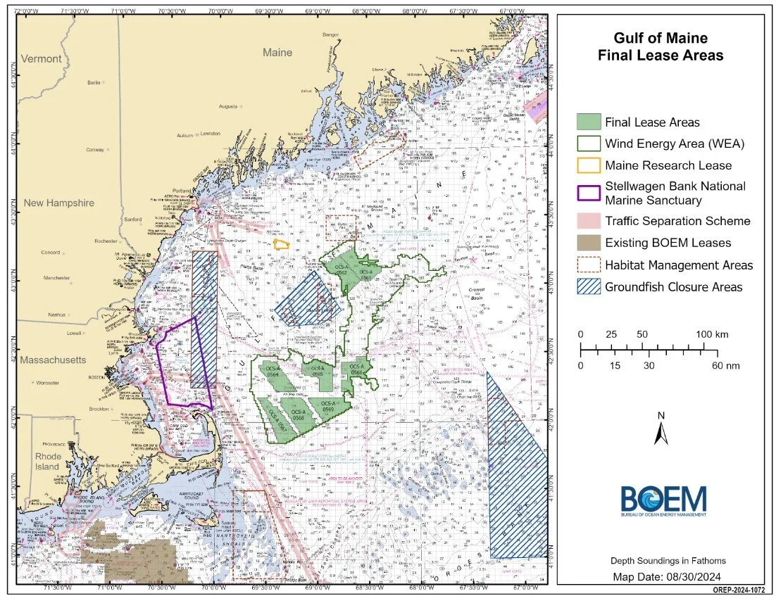 The 2024 Gulf of Maine sale was the first commercial auction for floating offshore wind on the Atlantic Coast, aiming to utilize deep-water areas.