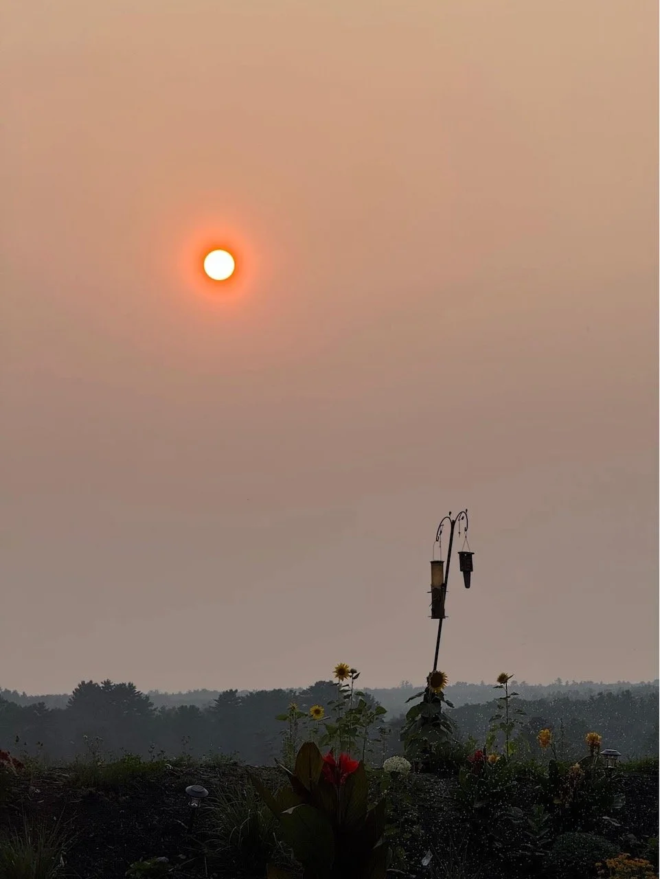 Wildfire smoke creates an eerie sky in Maine on August 4, 2025. Photo © Karen Leavitt